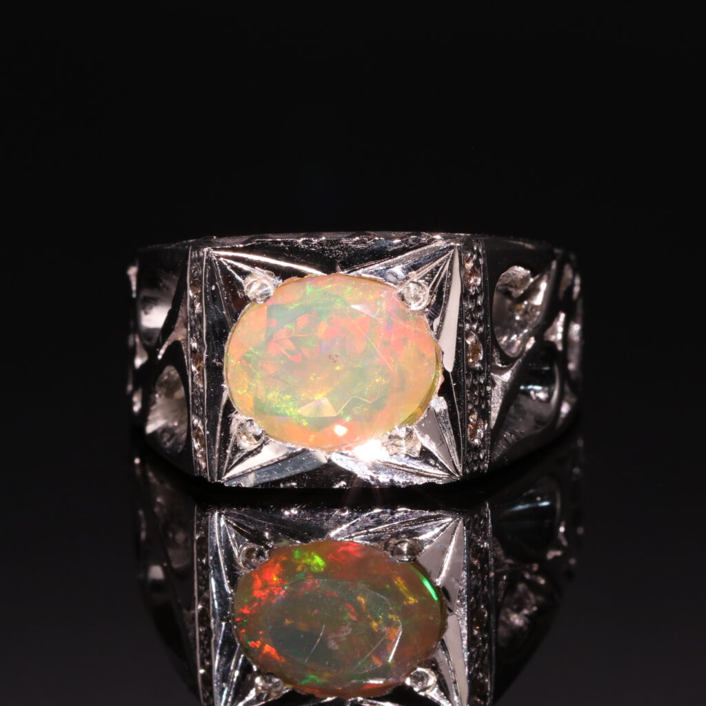 انگشتر مردانه نقره اپال مشکی تراش کد 5872