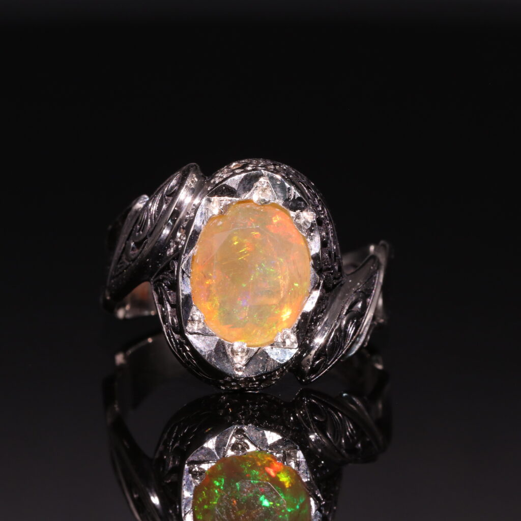 انگشتر مردانه نقره اپال مشکی تراش کد 11994