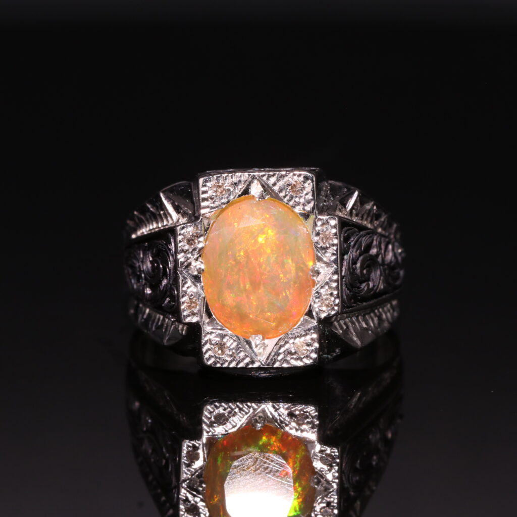 انگشتر مردانه نقره اپال مشکی آتشین کد 11690