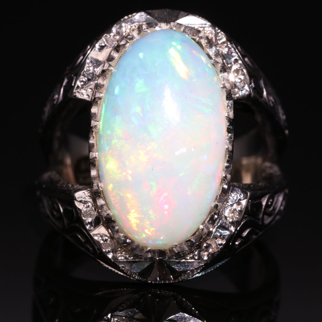 انگشتر مردانه نقره اپال سفید آتشین کد 11234