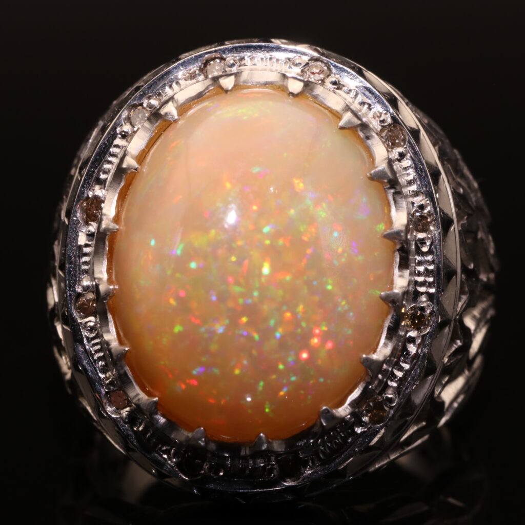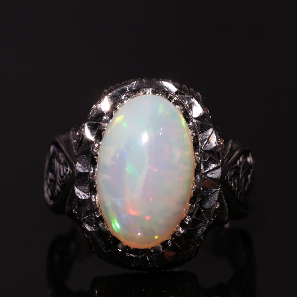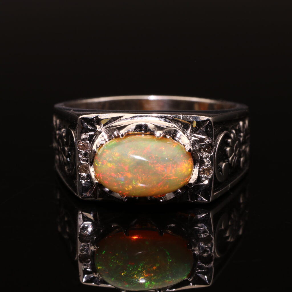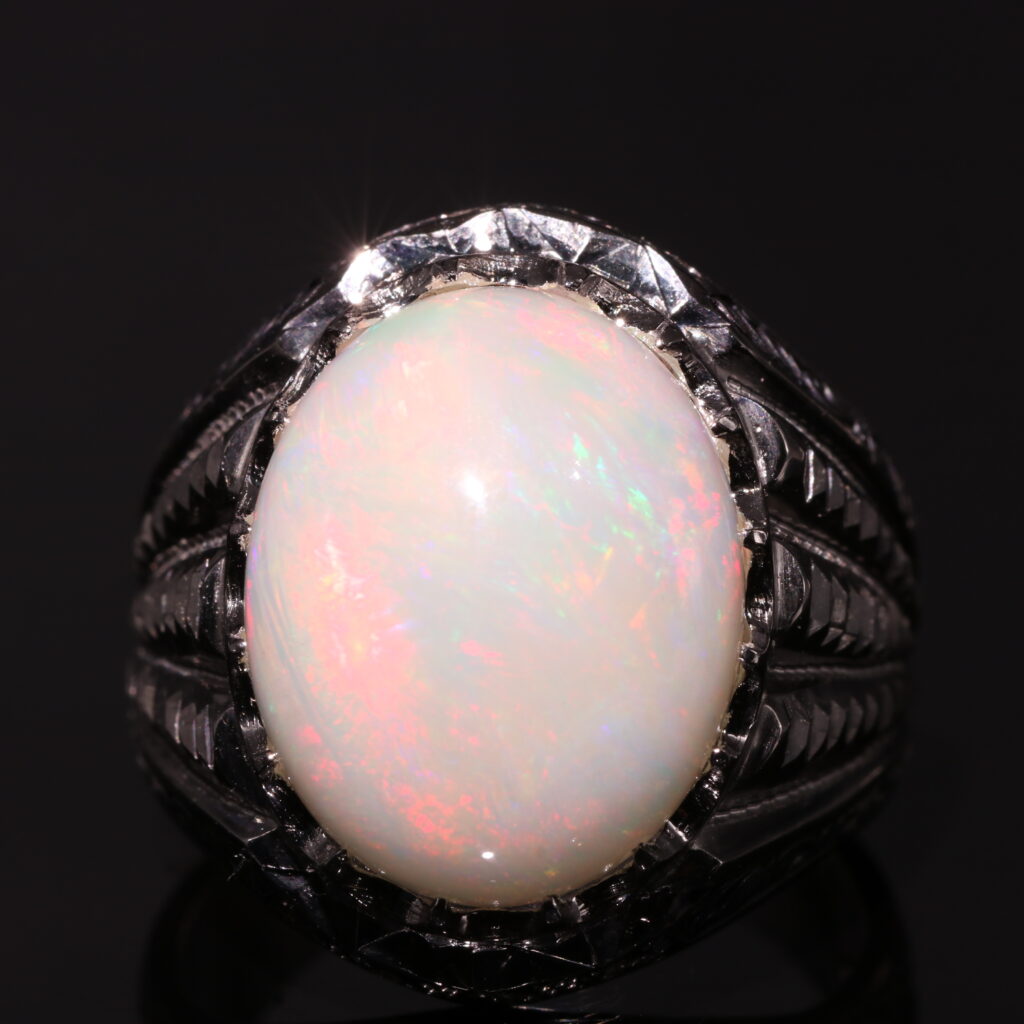 انگشتر مردانه نقره اپال سفید تراش کد 11109