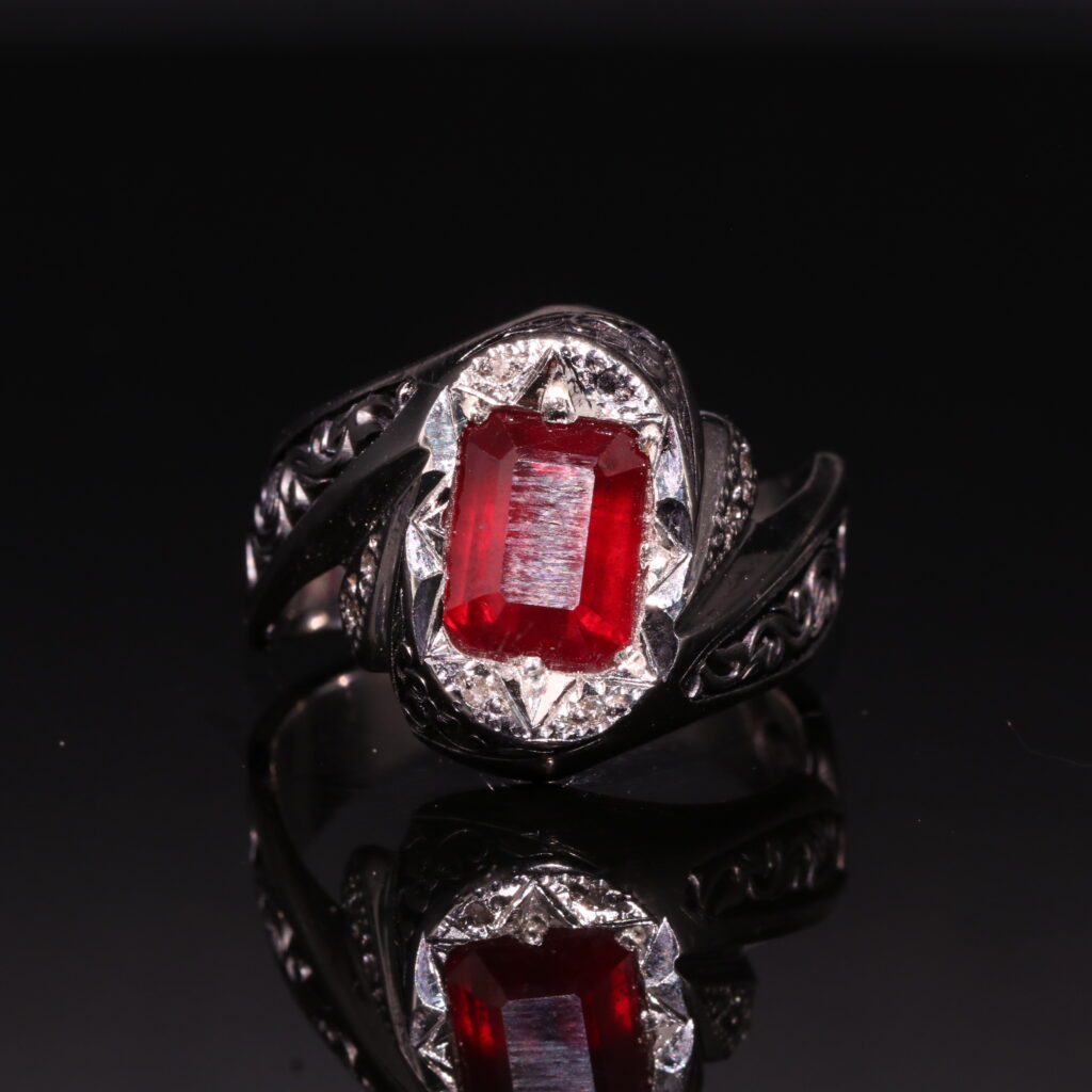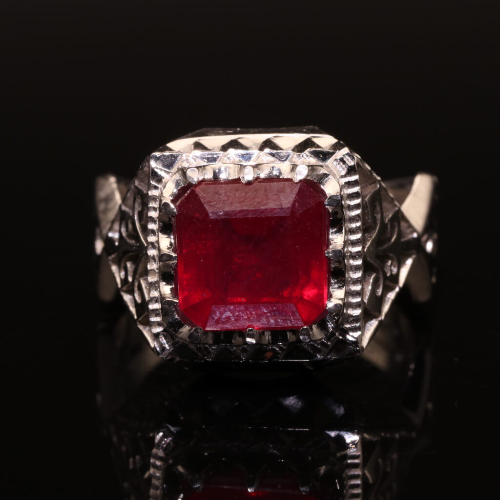انگشتر نقره یاقوت قرمز چهارگوش کد 12302