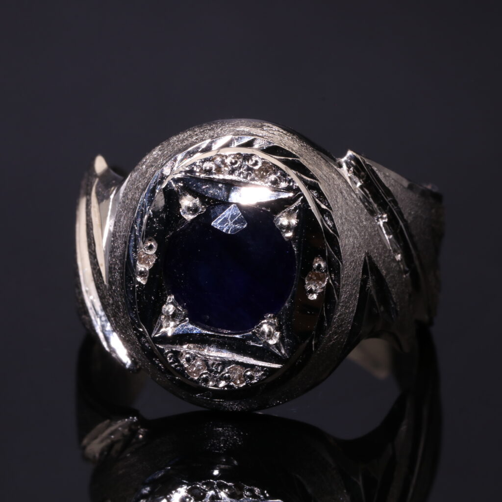 انگشتر مردانه نقره یاقوت کبود کد 5401
