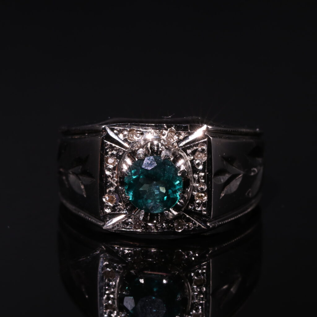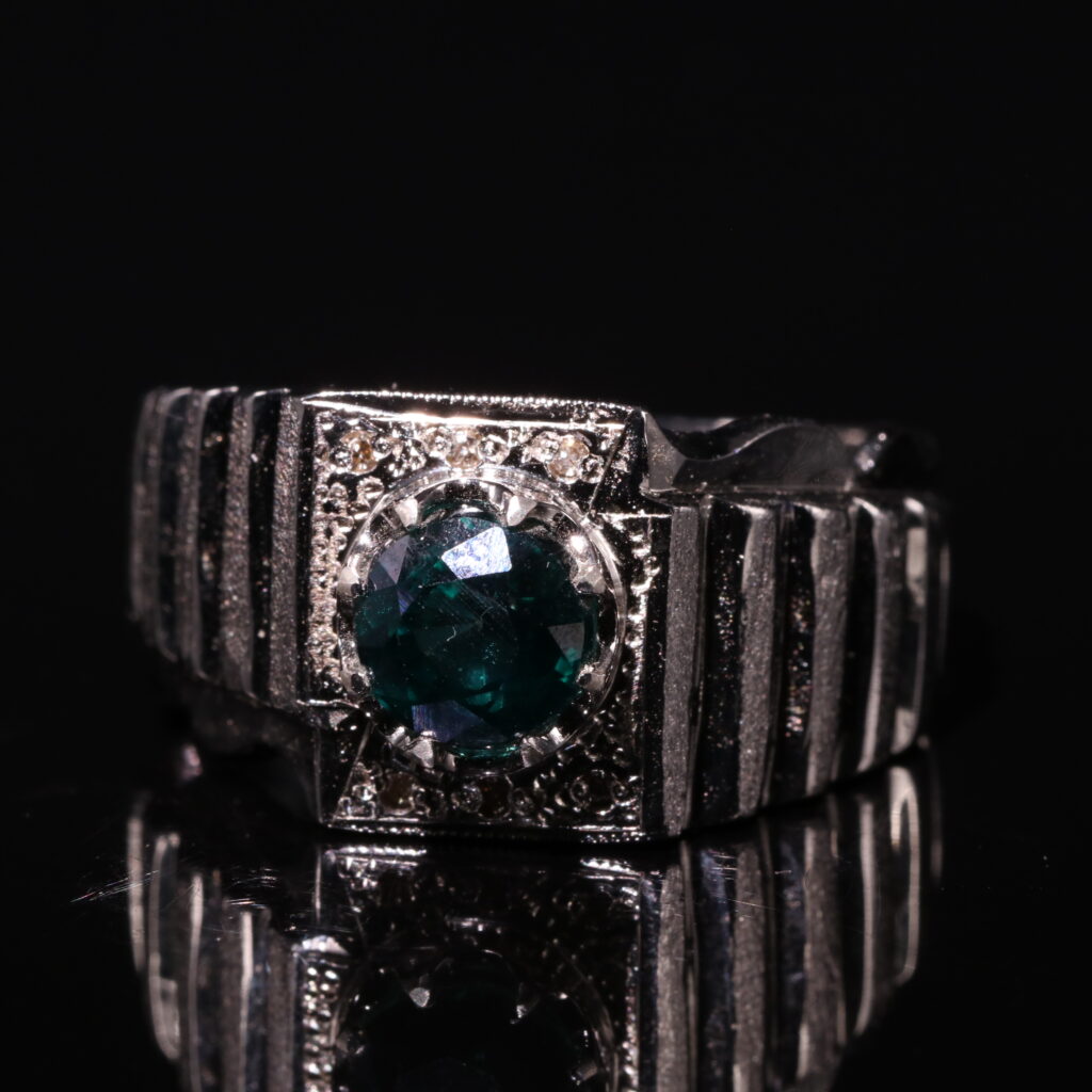 انگشتر مردانه نقره توپاز سبز کد 11118
