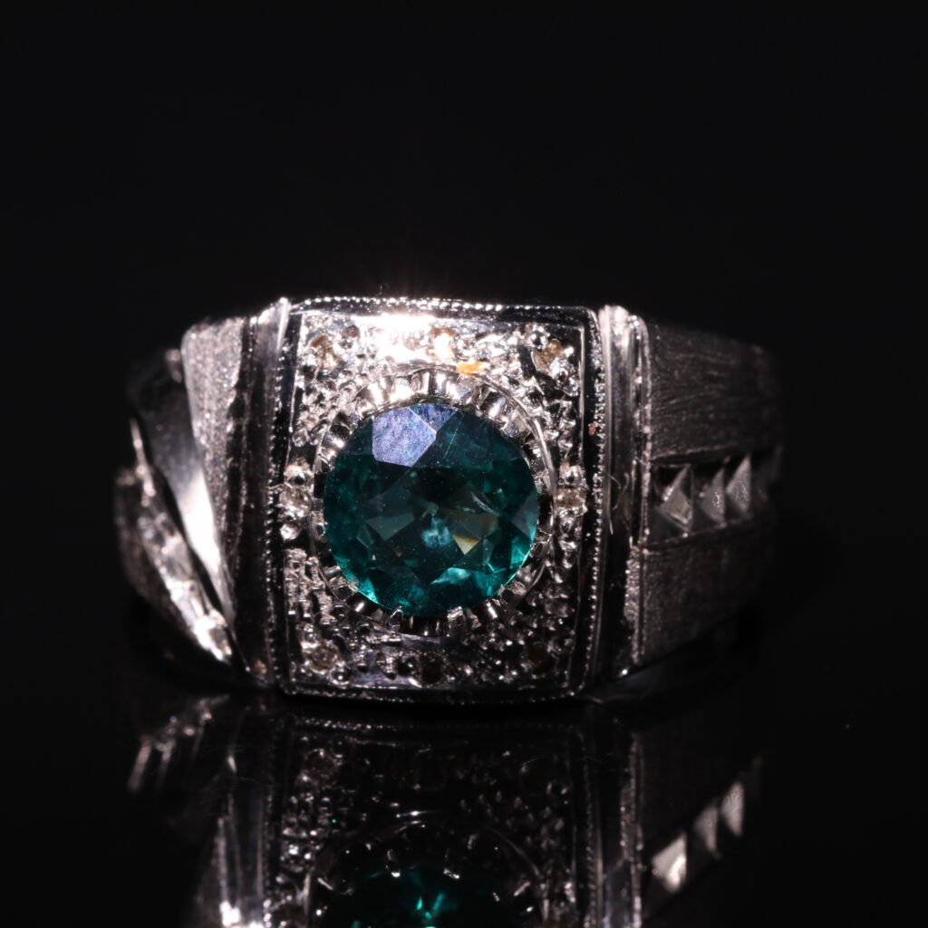 انگشتر مردانه نقره توپاز سبز کد 11007