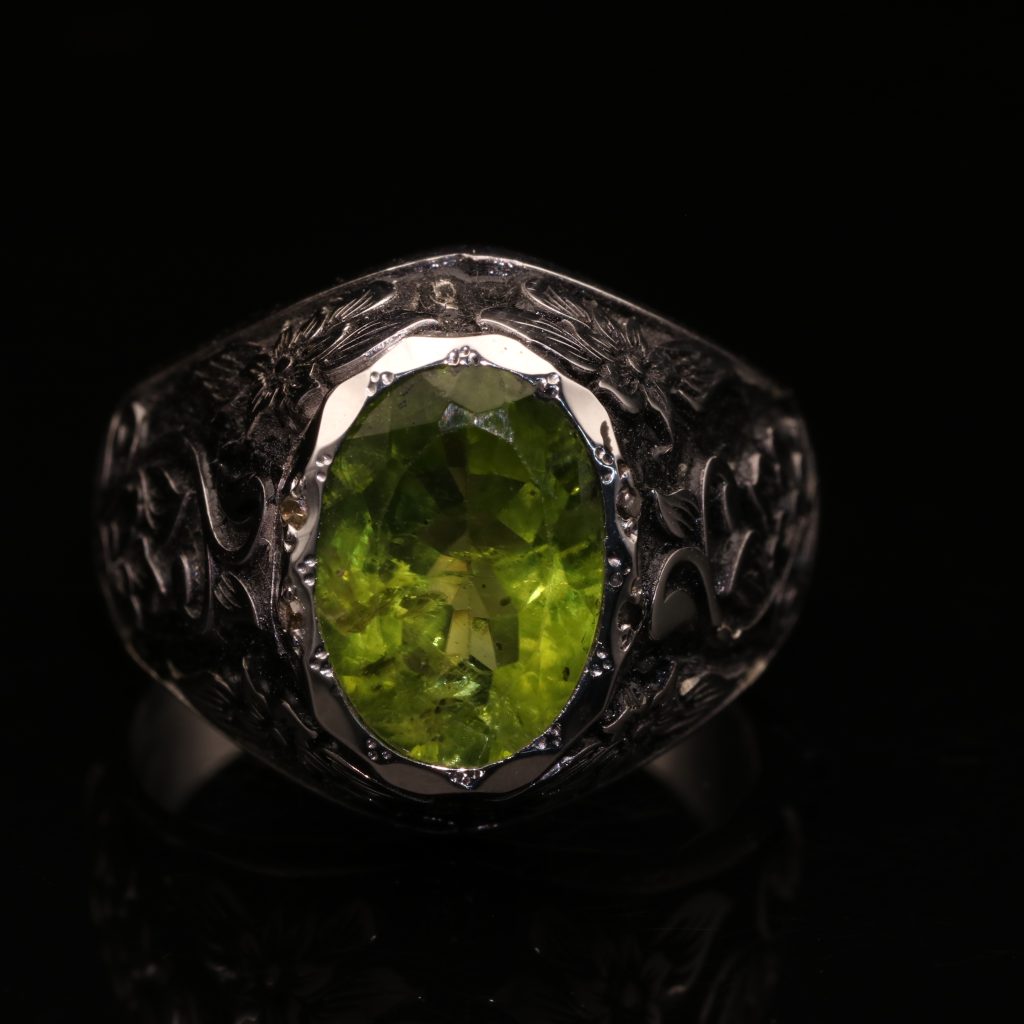 انگشتر مردانه نقره زبرجد چهارگوش کد 11012