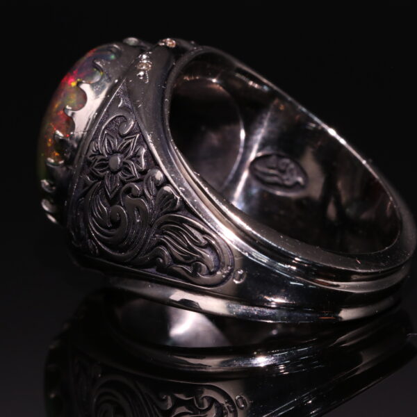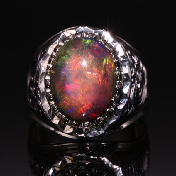 انگشتر نقره اپال مشکی آتشین کد 12247