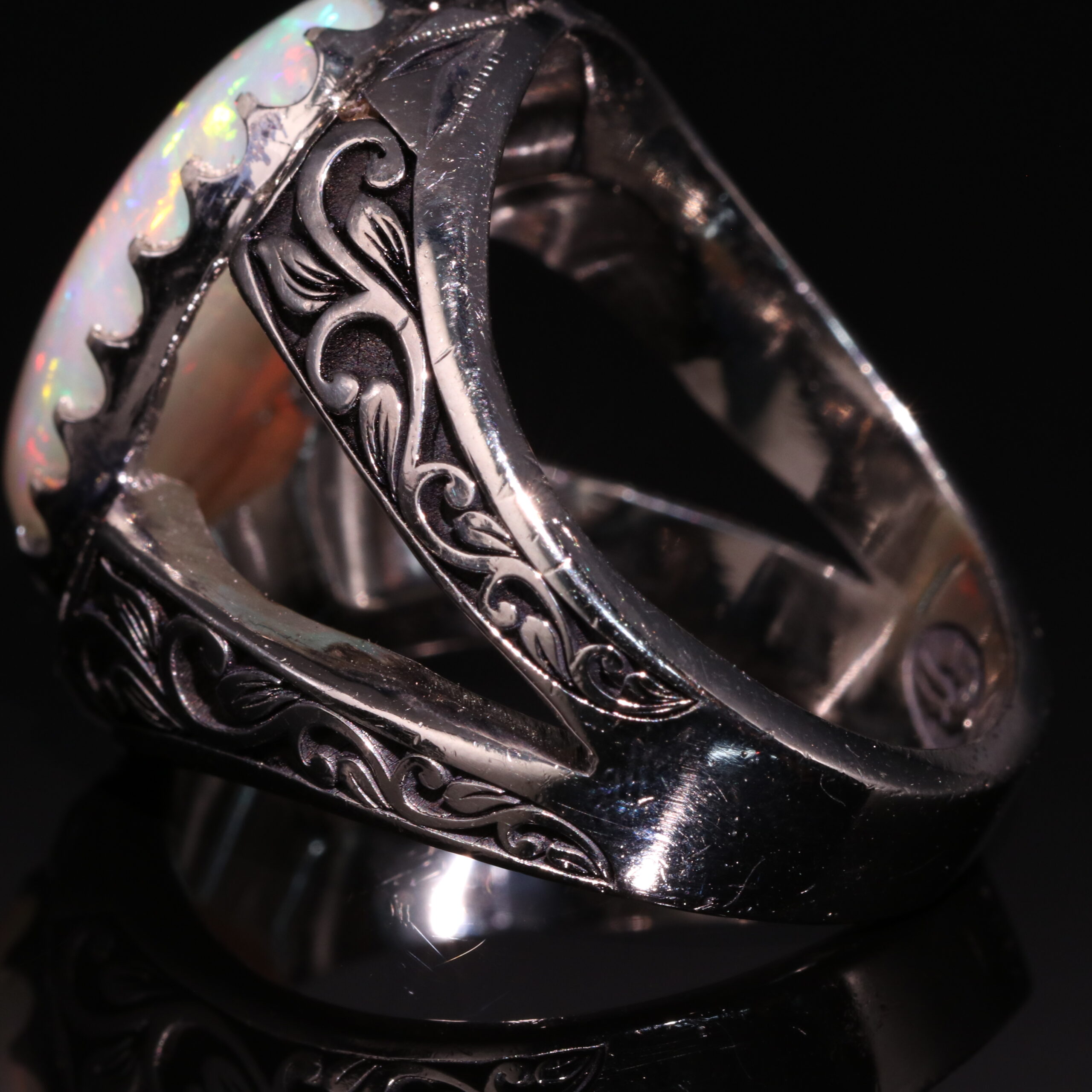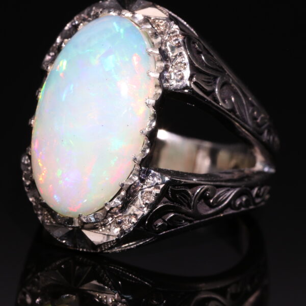 انگشتر نقره اپال سفید آتشین کد 12342