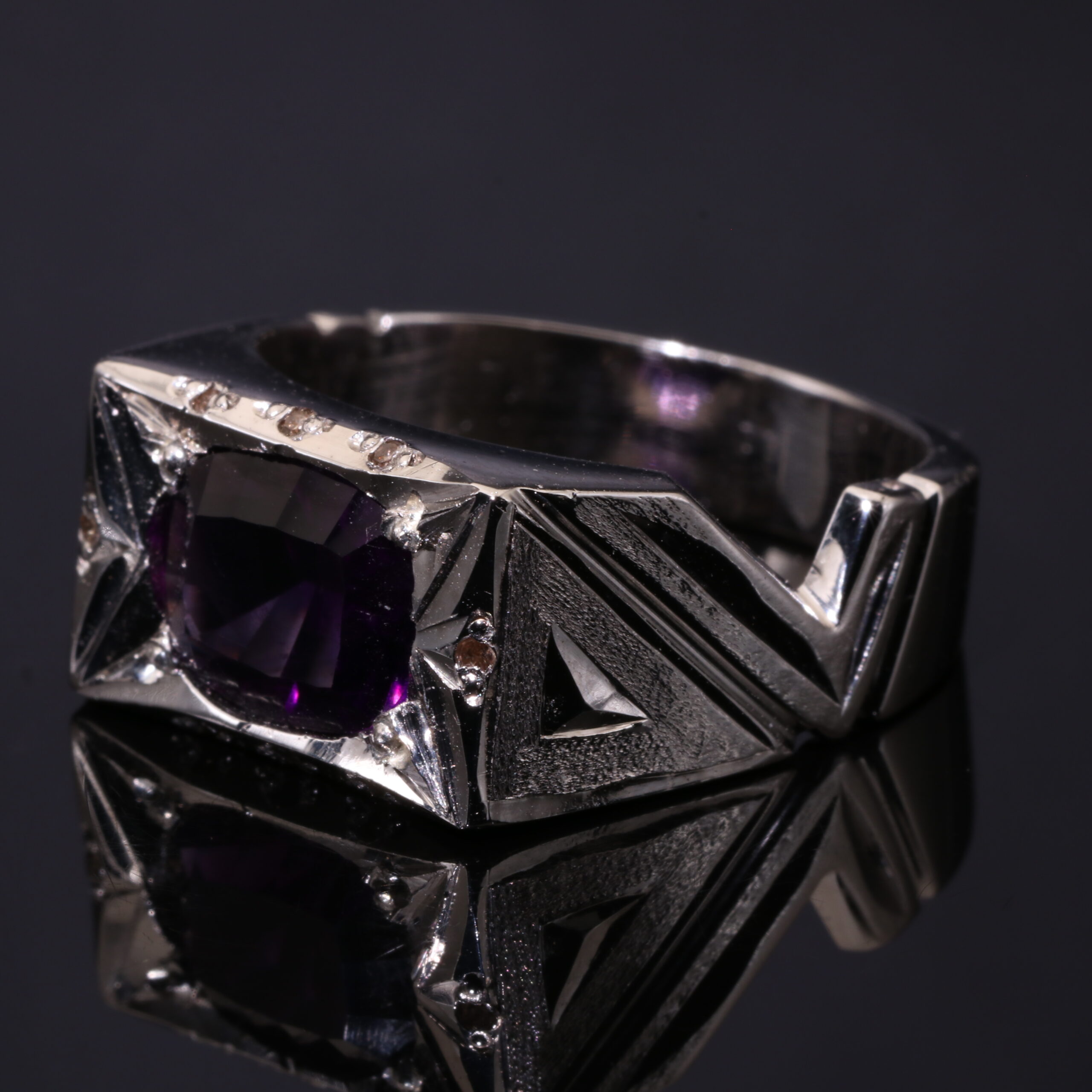 انگشتر نقره آماتیست لیزری A+ کد 12551