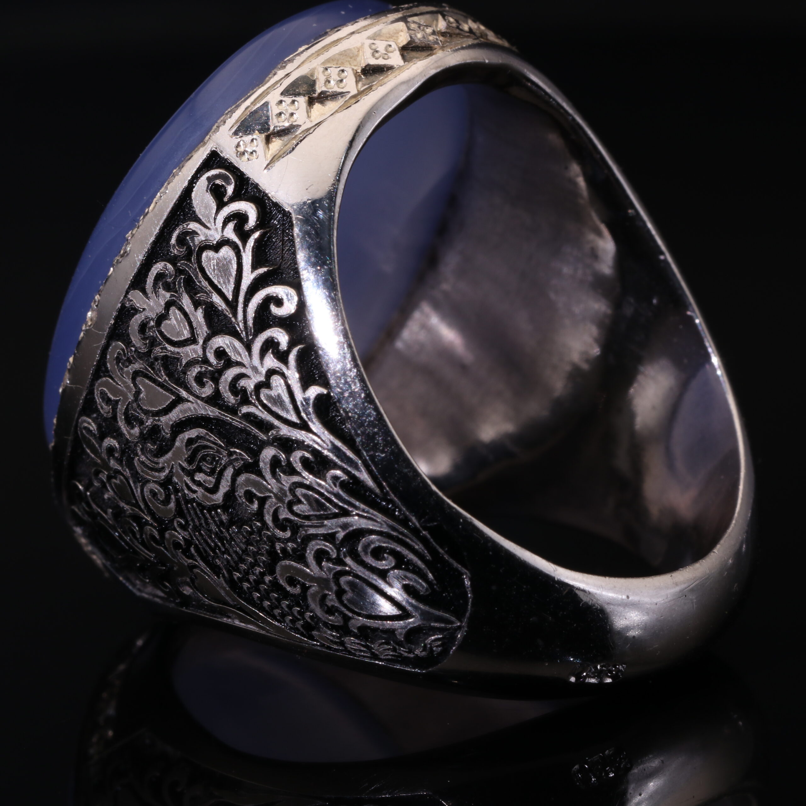 انگشتر مردانه نقره عقیق یمنی کبود کد 11071