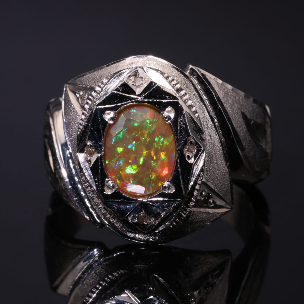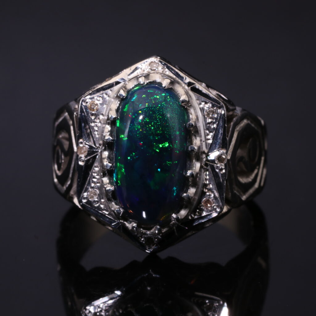 انگشتر نقره اپال مشکی تراش A+ کد 12622